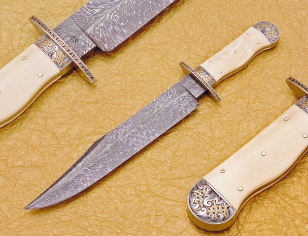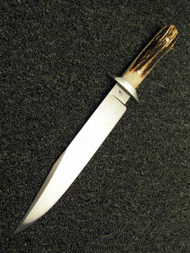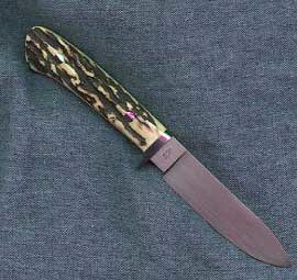 Pear Flat Special This model has a 4" semi-skinner blade available in carbon steel or Damascus. The piece is shown with stainless steel fittings and an India stag handle. A very functional design. McKee Scan