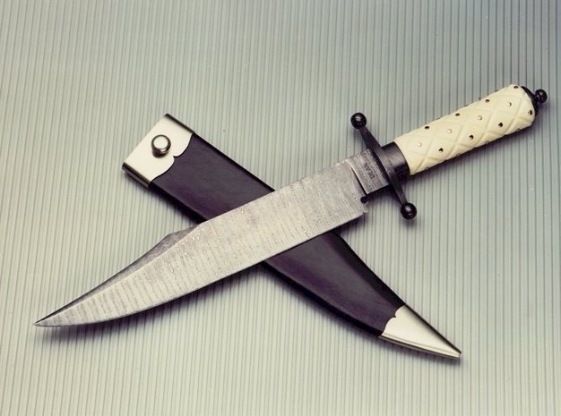1075 and 15N20 steels. The ivory handle