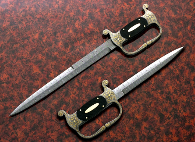 steel and are engraved and gold inlayed by